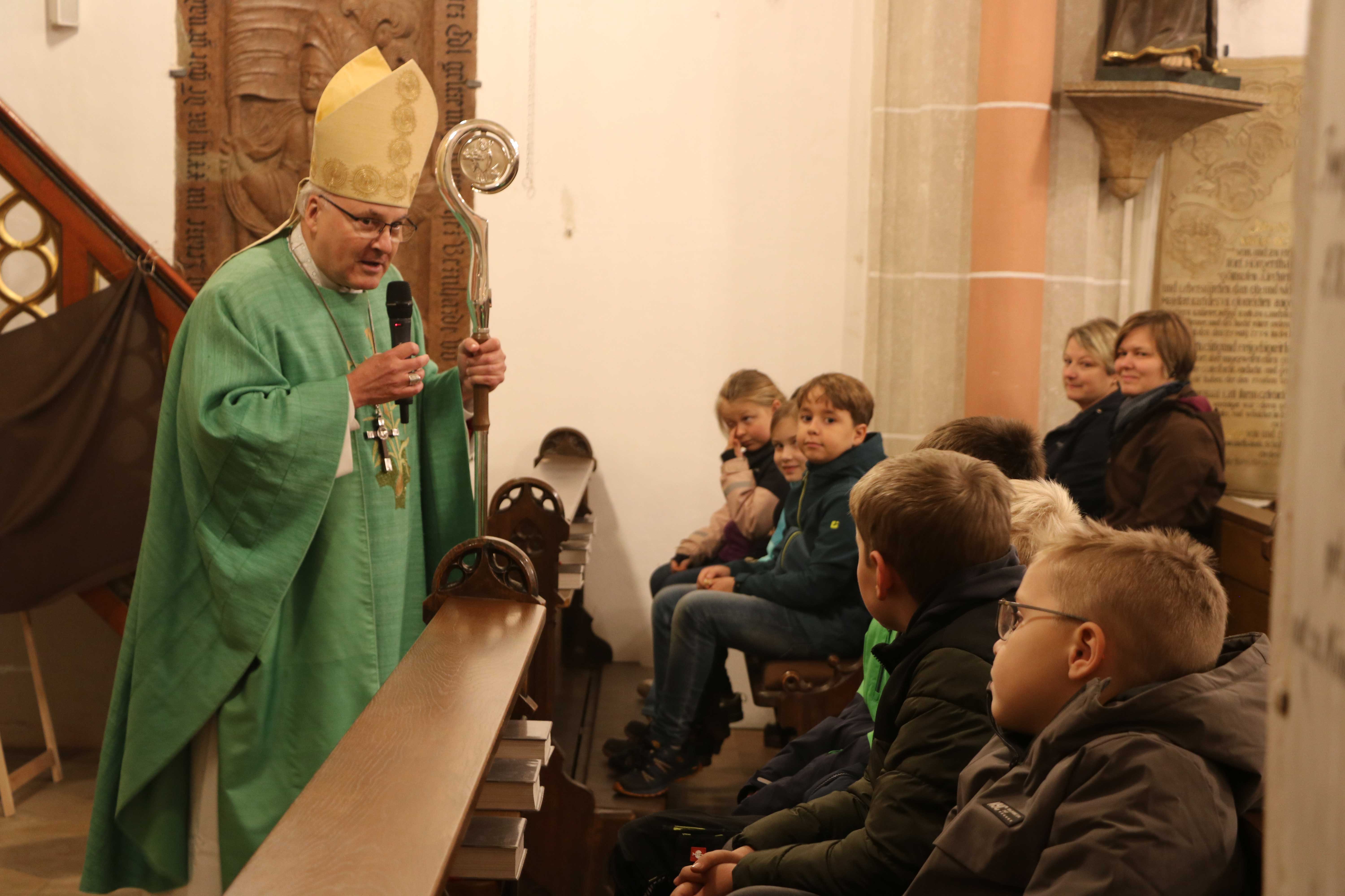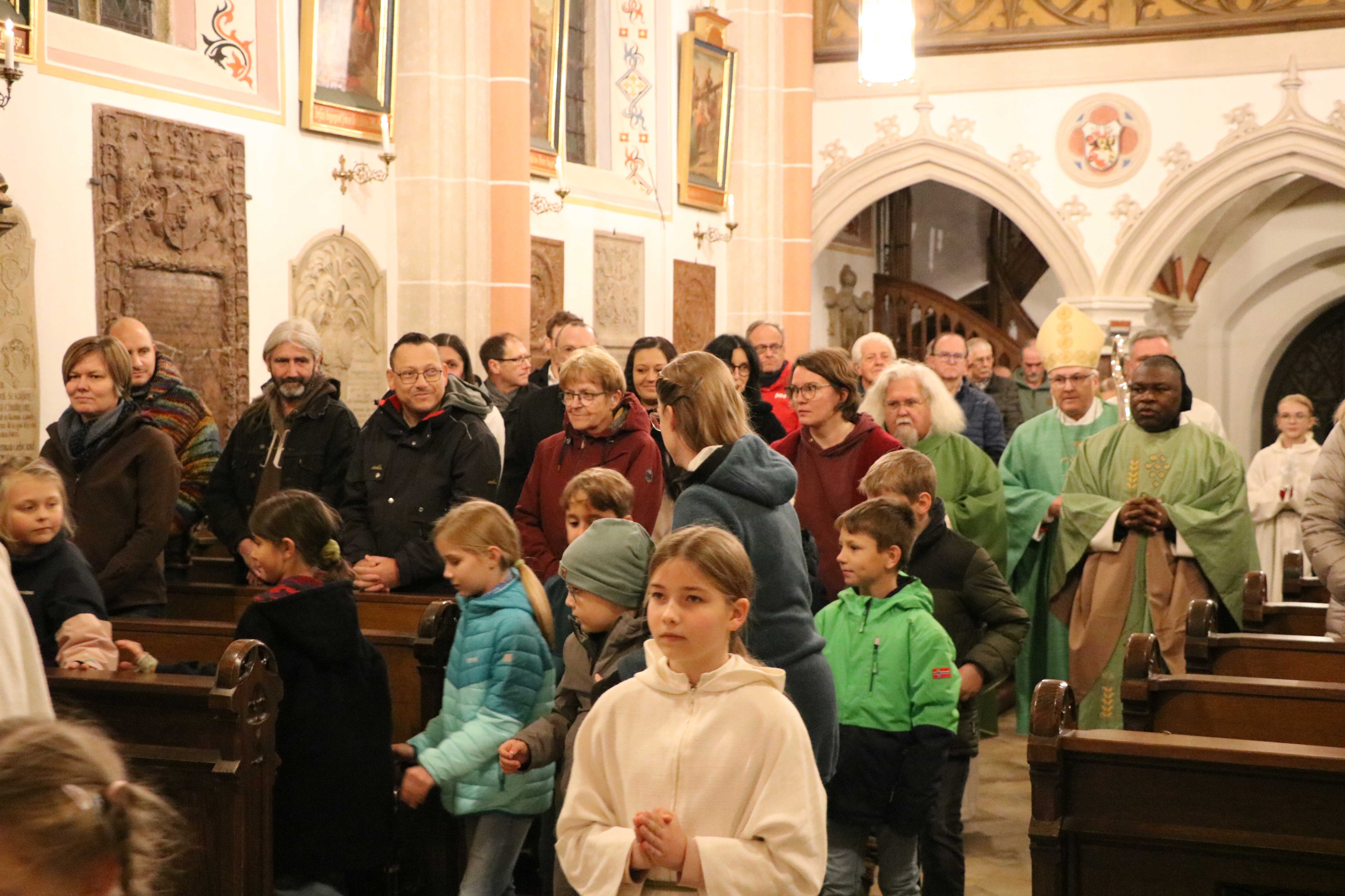 Ein besonderes Dankeschön sprach er Bürgermeisterin Sibylle Entwistle aus, die einen großzügigen finanziellen Zuschuss zugunsten der Kirche bereitgestellt hatte, der den üblichen Rahmen überstieg. Auch die Kirchensteuerzahler lobte Bischof Rudolf, da ihr Beitrag es erst möglich gemacht habe, dass die Diözese einen Zuschuss gewähren konnte. Ein weiteres Lob richtete der Bischof an die „riesige Schar“ von Ministranten, die einen wichtigen Teil des Gemeindelebens darstellen.
