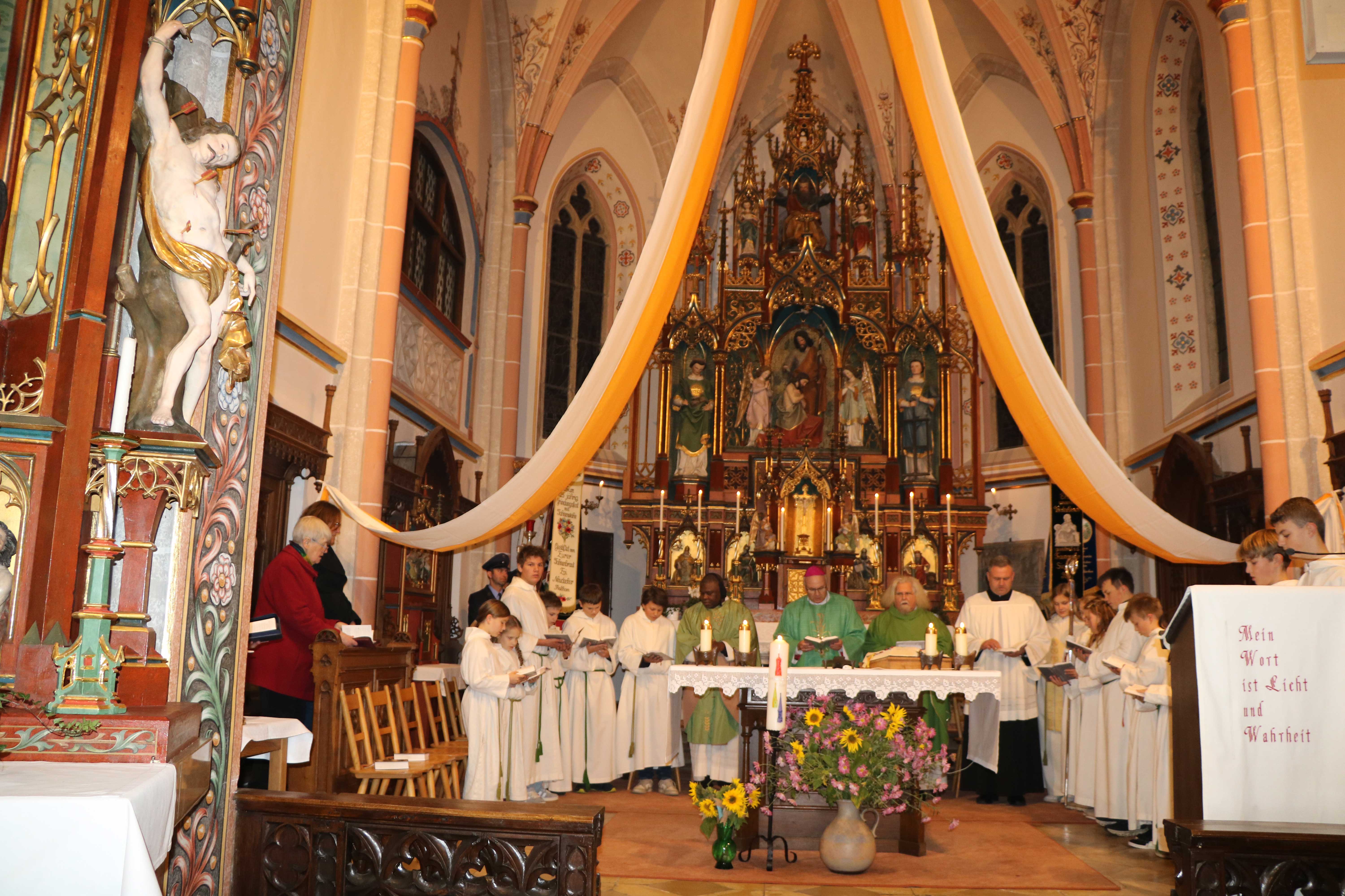 Bischof Rudolf zeigte sich in seiner Begrüßung über die Schönheit der renovierten Kirche beeindruckt und betonte, dass sie „noch schöner als auf den Bildern dargestellt“ wirke. Er gratulierte der Pfarrgemeinde zu diesem wunderbaren Gotteshaus, dessen neugotische Ausstattung vollständig erhalten geblieben ist, sowie zur gelungenen und unfallfreien Außensanierung. Die sorgfältig ausgeführten Arbeiten machten die Kirche zu einem herausragenden Zeugnis der Pfarrei und ihrer lebendigen Tradition.