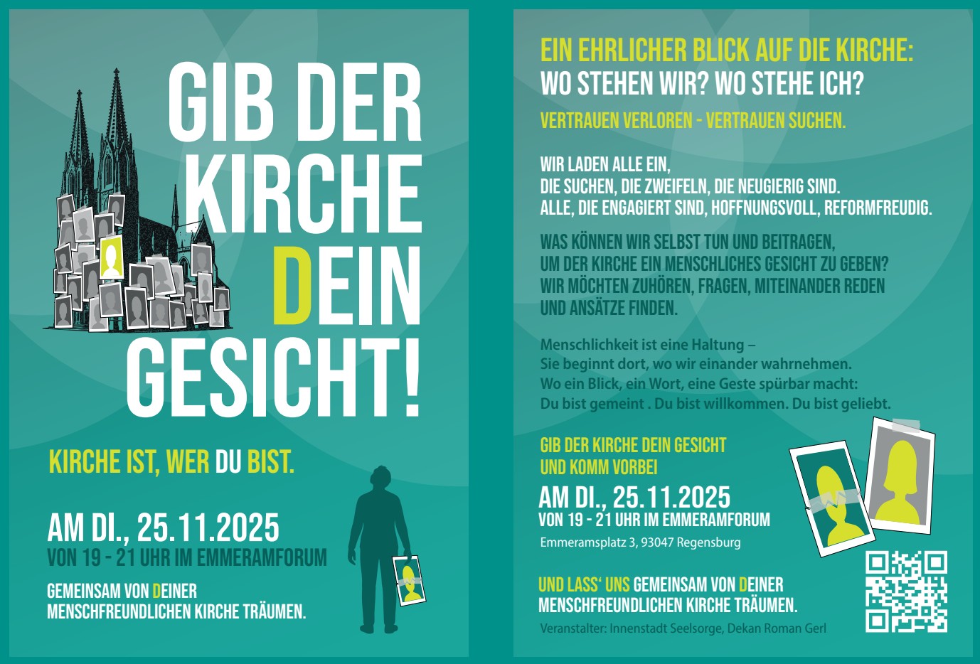 Die Fachstelle Innenstadtseelsorge Regensburg ist ein Ort, wo gerne neue Seelsorgeprojekte auf den Weg gebracht werden. Pfarrer Roman Gerl leitet diese Fachstelle. Zusammen mit seinem Team hat er sich jetzt was überlegt mit dem vielversprechenden Titel „Gib der Kirche Dein Gesicht!“.