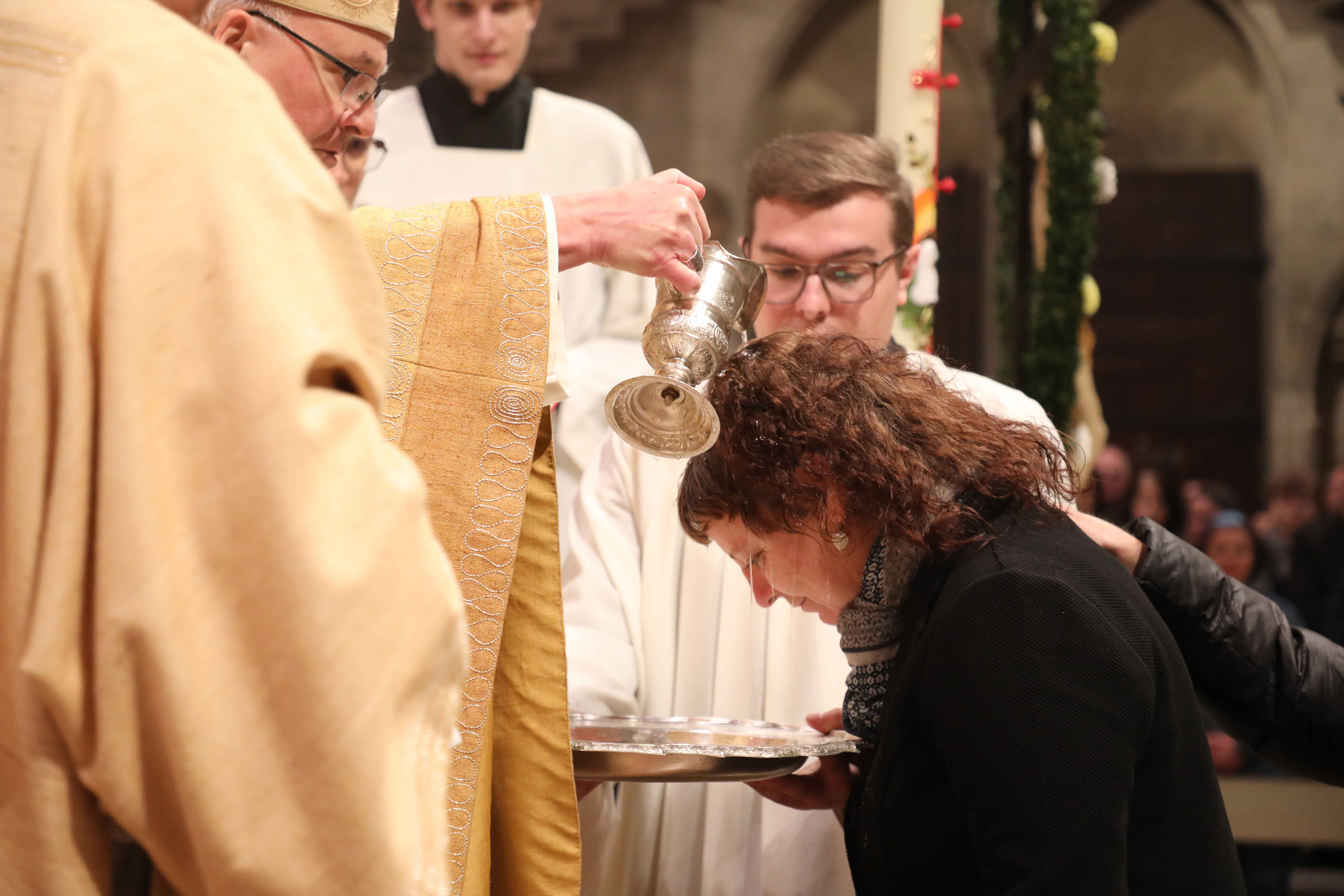 Ein Kleinkind, vorangetragen in einem Körbchen, brachte das Evangelium zum Altar.