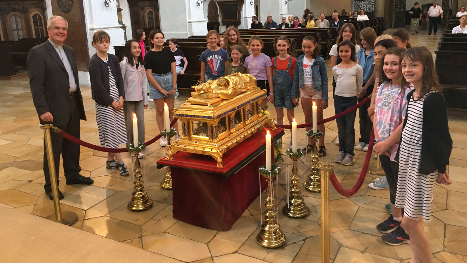 Bei dem Exkurs in das Leben des heiligen Wolfgang durfte zum Abschluss auch ein Unterrichtsgang nach St. Emmeram freilich nicht fehlen, um den prachtvollen Reliquienschrein des Bistumspatrons zu sehen und damit zu lernen: Wer sein Leben Gott zur Verfügung stellt, erlangt zeitlosen Ruhm und die Heiligkeit bei Gott dafür!