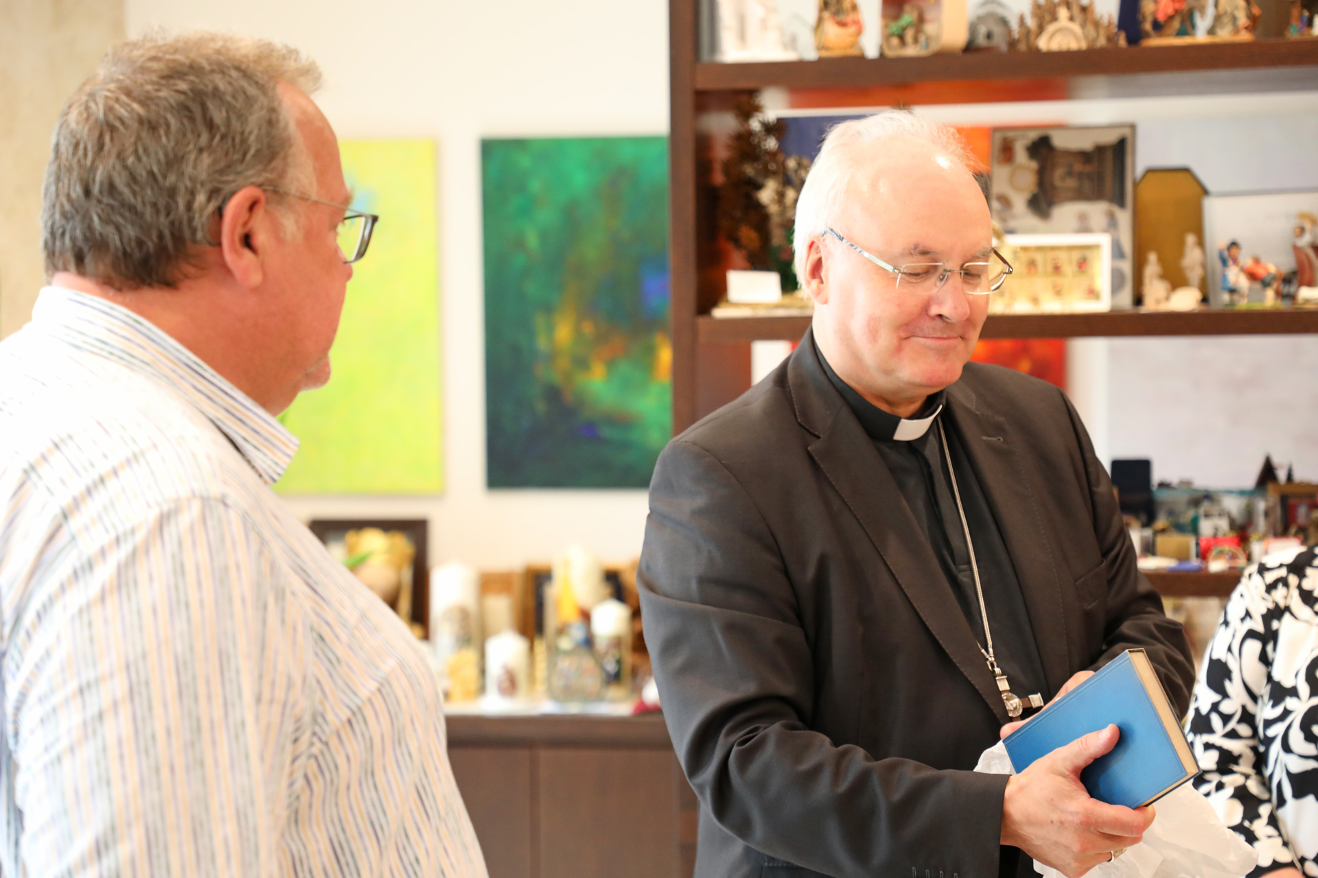 Als Gastgeschenk überreichten die Pastoren dem Regensburger Oberhirten passend zum ökumenischen Anlass die Erstausgabe von Erik Petersons „Der Monotheismus“. Erik Peterson war evangelischer Theologe und Autor, der später zum römisch-katholischen Glauben konvertierte. So waren nicht nur Krippen das Thema der Gespräche der evangelischen Gruppe mit dem katholischen Bischof. Auch das gemeinsame Interesse an Dingen wie theologischer Literatur, Sonntagskultur, Gottesdienstvorbereitung oder die Unterstützung der Lektoren in einem Gottesdienst war groß.
