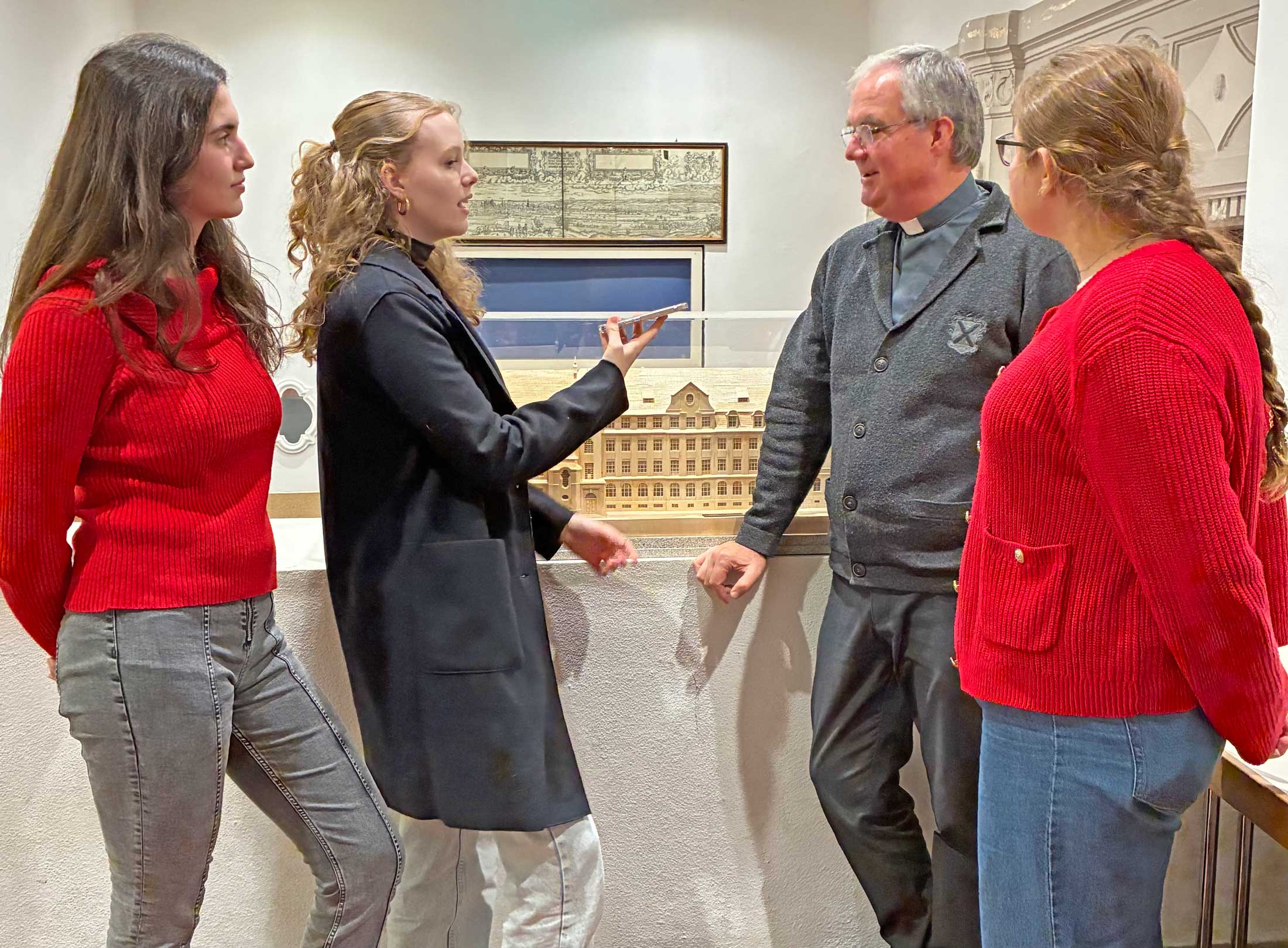 Mehrere Schülerinnen der höheren Jahrgangsstufen nahmen ihren Religionslehrer, Domvikar Andreas Albert, ins Kreuzverhör, um noch mehr über die Tradition des Rosenkranzgebetes zu lernen und zu erfahren, was ihm persönlich an dieser Gebetsform besonders reizt.