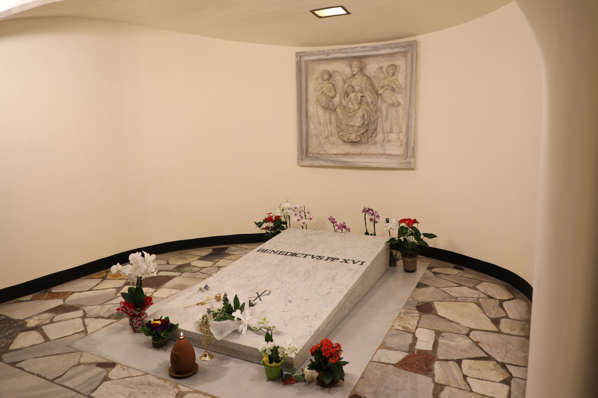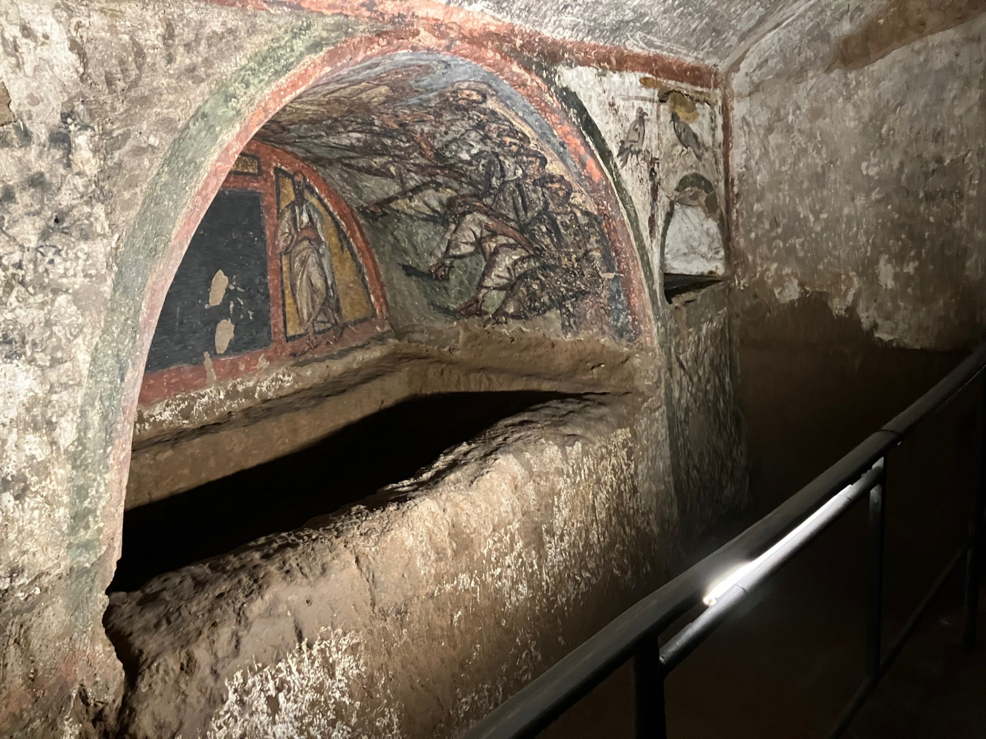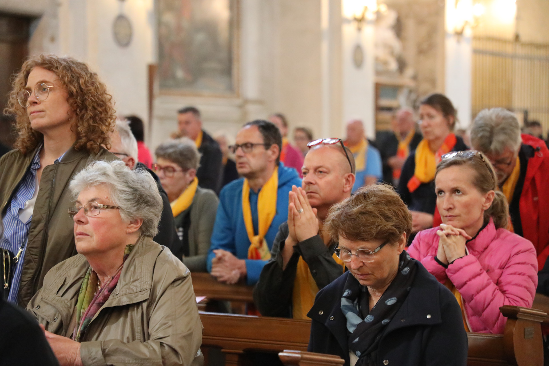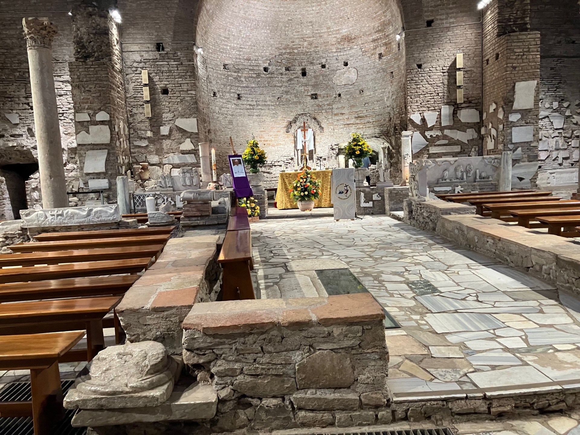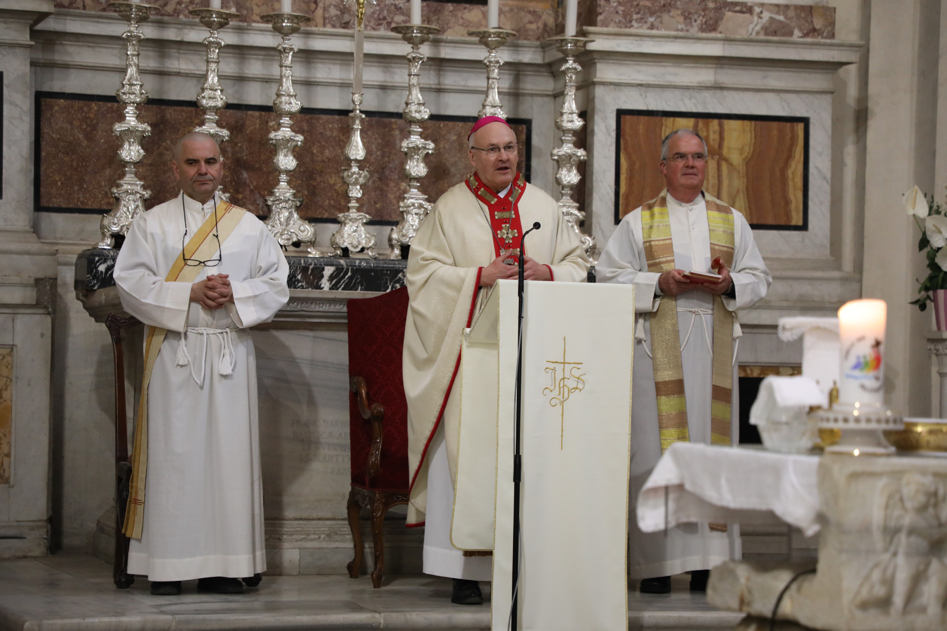 Die erste von mehreren Pilgergruppen, die mit Bischof Rudolf Voderholzer unterwegs war, änderte ihr Programm und besuchte den Petersdom, um Franziskus nahe zu sein. Auch in den Reisebussen wurde im Gebet an den verstorbenen Papst gedacht. Während die Busgruppen den Gottesdienst am Morgen des Ostermontags im Stift Wilten gefeiert hatten, trafen sich die Fluggruppen am späten Nachmittag in San Sebastiano zur Eucharistiefeier. „Was für ein Tag!“, begrüßte Bischof Rudolf die Gläubigen. „In unseren Herzen toben die widersprüchlichsten Gefühle – auf der einen Seite Dankbarkeit, dass wir gut angekommen sind – auf der anderen Seite die Nachricht über den Tod von unserem Papst Franziskus.“