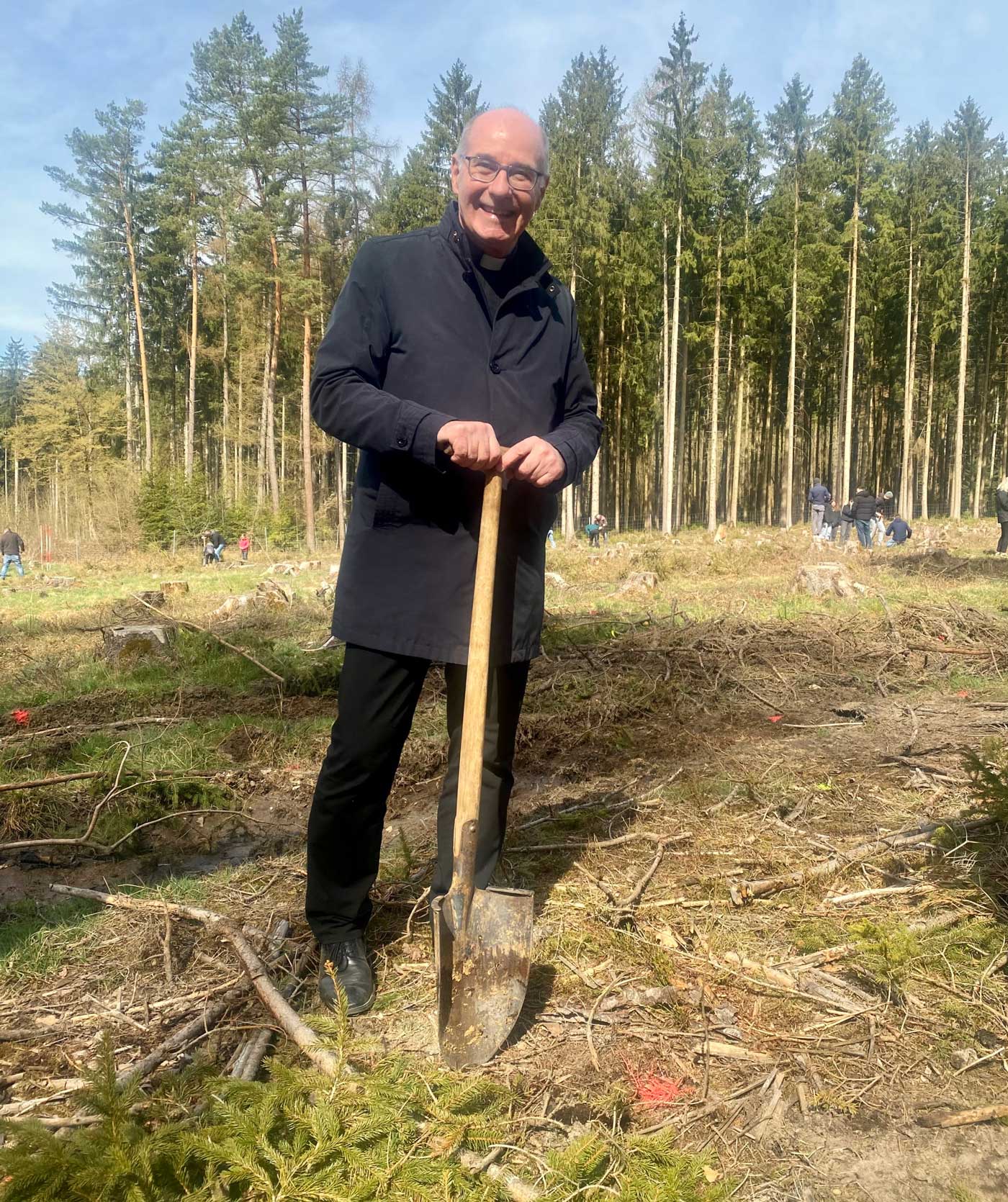 „Gestern blickten wir zurück in die Anfänge, heute schauen wir mit neu gepflanzten Bäumen in die Zukunft“, erklärte Dompropst Dr. Franz Frühmorgen, bevor er die Setzlinge segnete. Der Dompropst begleitete den Freiluft-Festakt und griff tatkräftig mit zum Spaten. Das St. Katharinenspital feiert heuer den 800. Geburtstag und würdigt dabei das ganze Jahr über die Teilbereiche der Stiftung. Den Anfang machten die Forstbetriebe. Im Spitalforst in Ziegelhütte bei Lappersdorf pflanzte der Spitalmeister zusammen mit Pfadfinderkindern und Pflegeheim-Bewohnern am Donnerstagvormittag 800 kleine Eichen.