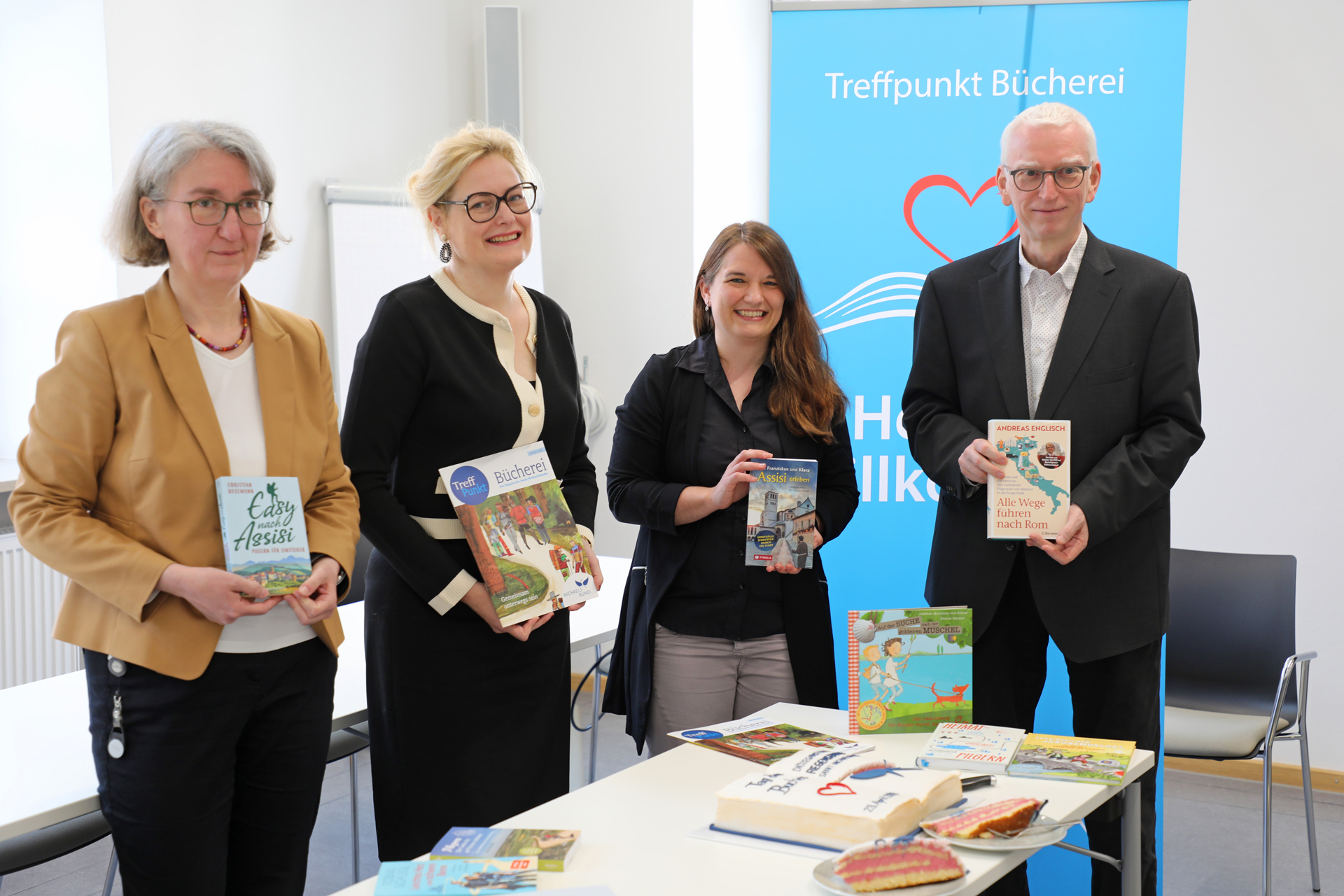 Auch Dr. Claudia Pecher, Leiterin der Landesfachstelle für Büchereien und Bildung, reiste eigens aus München an, um am Pressetermin teilzunehmen. Sie brachte zum Tag des Buches Medien zum Thema „Pilgern“ mit, die künftig in der Austauschbücherei der Diözesanstelle für Büchereien und Mitarbeitende der Diözese zur Verfügung stehen werden.