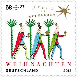 In den Wochen vor Weihnachten werden gerne Briefe geschrieben: Weihnachtsbriefe, Weihnachtskarten oder Briefe von Kindern an das Christkind. Mit den alljährlichen Weihnachtsmarken kann man gleichzeitig noch Gutes tun. Ab 2. November gibt es dazu die neue Weihnachtsmarke. In diesem Jahr stehen darauf die Heiligen drei Könige im Blickpunkt. Auf der Marke sind Kaspar, Melchior und Balthasar abgebildet, wie sie mit festem Blick und ihren Gaben in den Händen dem Stern von Bethlehem folgen. Gestaltet wurde die diesjährige Marke von der Illustratorin und Malerin Kitty Kahane aus Berlin. Die Marke hat den Wert 58 plus 27 Cent. Der Zuschlagserlös von 27 Cent pro Weihnachtsmarke geht vollständig in die soziale Arbeit. Wer seine Marken direkt bei der Caritas Regensburg kauft, unterstützt deren regionale soziale Projekte. Die Wohlfahrtsmarken sind erhältlich bei der Caritas Regensburg, Von-der-Tann-Straße 7, Telefon 0941/5021-123, E-Mail: a.rottner@caritas-regensburg.de oder im Internet unter www.caritas-wohlfahrtsmarken.de.