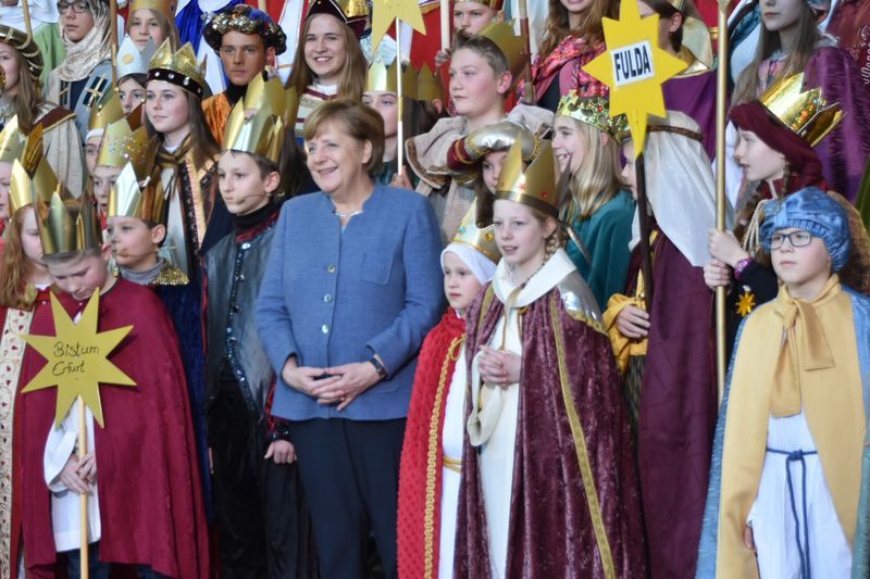 108 Sternsinger waren am Montag zu Gast bei Bundeskanzlerin Angela Merkel. Jeweils vier Sternsinger aus allen 27 deutschen Diözesen vertraten im Bundeskanzleramt in Berlin die engagierten Mädchen und Jungen, die sich rund um den Jahreswechsel bundesweit in mehr als 10.000 katholischen Pfarrgemeinden und Einrichtungen an der 60. Aktion Dreikönigssingen beteiligen. Aus allen Himmelsrichtungen reisten die Sternsingerdelegationen mit ihren funkelnden Sternen, ihren glänzenden Kronen und ihren prächtigen Gewändern in die Bundeshauptstadt – unter ihnen waren auch vier Pfarreikinder aus der Pfarrei Herz Jesu in Marktredwitz, die das Bistum Regensburg vertraten.