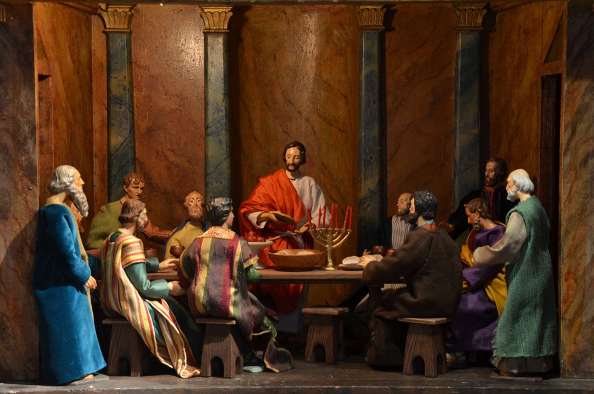 Pfarrer Heinrich Weber in Alburg (Straubing) seinerseits freut sich über das stille Schauspiel, das sich in seiner Pfarrkirche St. Stefan zuträgt. Es gibt 13 Szenen, die etwa im Monatsrhythmus wechseln. Frau Andrea Wagner aus der Pfarrei hat den regelmäßigen Umbau vor Jahren übernommen und ist gut eingearbeitet. "Wir haben in unserem Alltag ganz viel mit bewegten Bildern zu tun", weiß Pfarrer Weber: "Die Jahreskrippe dagegen arbeitet mit stillen Bildern. Sie lädt zum stillen Verweilen ein." Ihm es ist wichtig, die biblischen Inhalte mit heute in Verbindung zu bringen. So erscheint in den Szenen der Jahreskrippe in der niederbayerischen Pfarrei parallel zur Hochzeit von Kana das Gäubodenfest, Attraktionspunkt für die ganze Gegend einmal im Jahr (2017: 11. bis 21. August). Die Szene des Letzten Abendmahls steht mit der Erstkommunion in Verbindung, die sich gleich neben dem Mahl zuträgt; und in der Darstellung des Pfingstereignisses figurieren nicht nur die Apostel, sondern überraschend, aber völlig passend: auch ein Firmling.