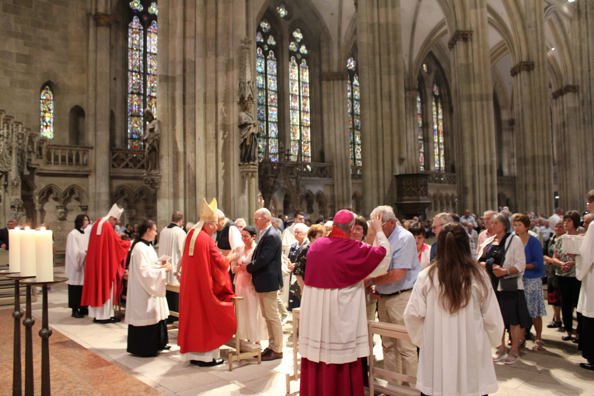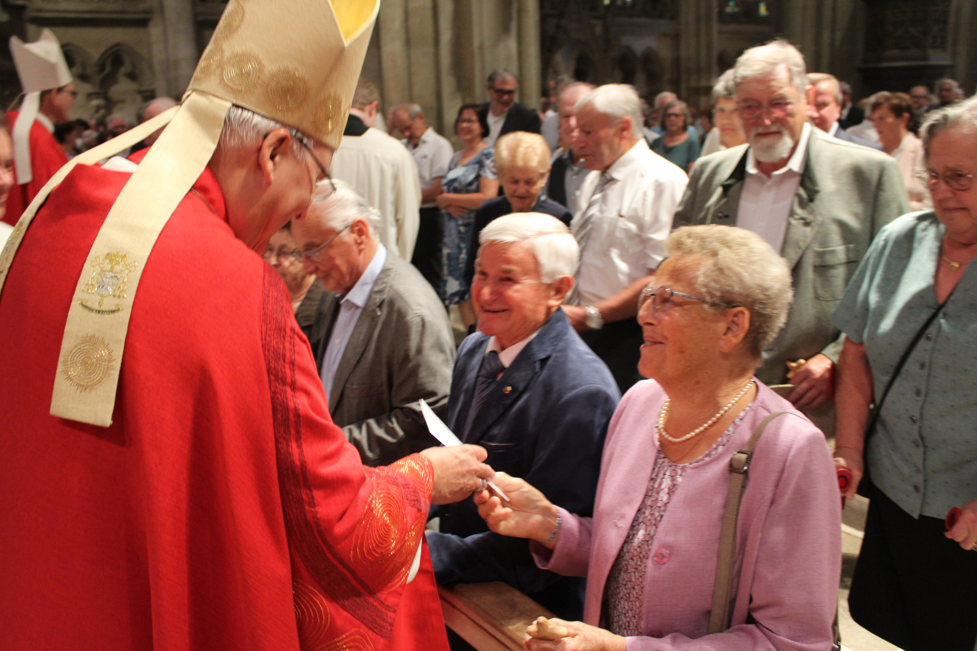 Am Hochfest der Apostel Petrus und Paulus füllten Hunderte Ehepaare den Regensburger Dom. Bischof Dr. Rudolf Voderholzer nahm sich beim Pontifikalamt Zeit, um die mehr als 250 Ehejubilare aus dem ganzen Bistum zu segnen und ihnen für ihr lebenslanges Zeugnis der Treue zu danken. Schon in der Woche zuvor hatte er vielen Jubelpaaren seinen persönlichen Segen gespendet.