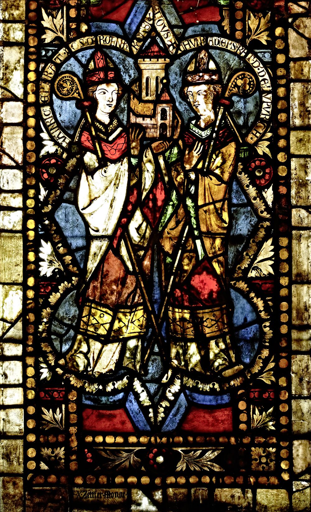 Glasfenster mit ihren über 800 erhaltenen Glasscheiben. Die farbigen Fenster