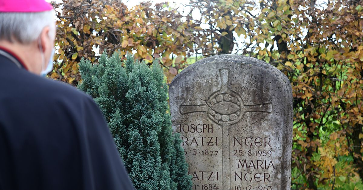 Zu Allerseelen hat Bischof Rudolf Voderholzer in der Pfarrkirche St. Josef in Regensburg-Ziegetsdorf ein Pontifikalamt gefeiert und im Anschluss das Grab der Eltern und der Schwester der Ratzinger-Brüder Georg und Joseph gesegnet. Diese Tradition besteht schon seit vielen Jahren und war 2020 besonders angebracht: Am ersten Juli war der ehemalige Domkapellmeister Georg Ratzinger verschieden und davor hatte der emeritierte Papst seinen kranken Bruder besucht und hatte während des Regensburg-Aufenthalts auch am Familiengrab in Ziegetsdorf gebetet.
