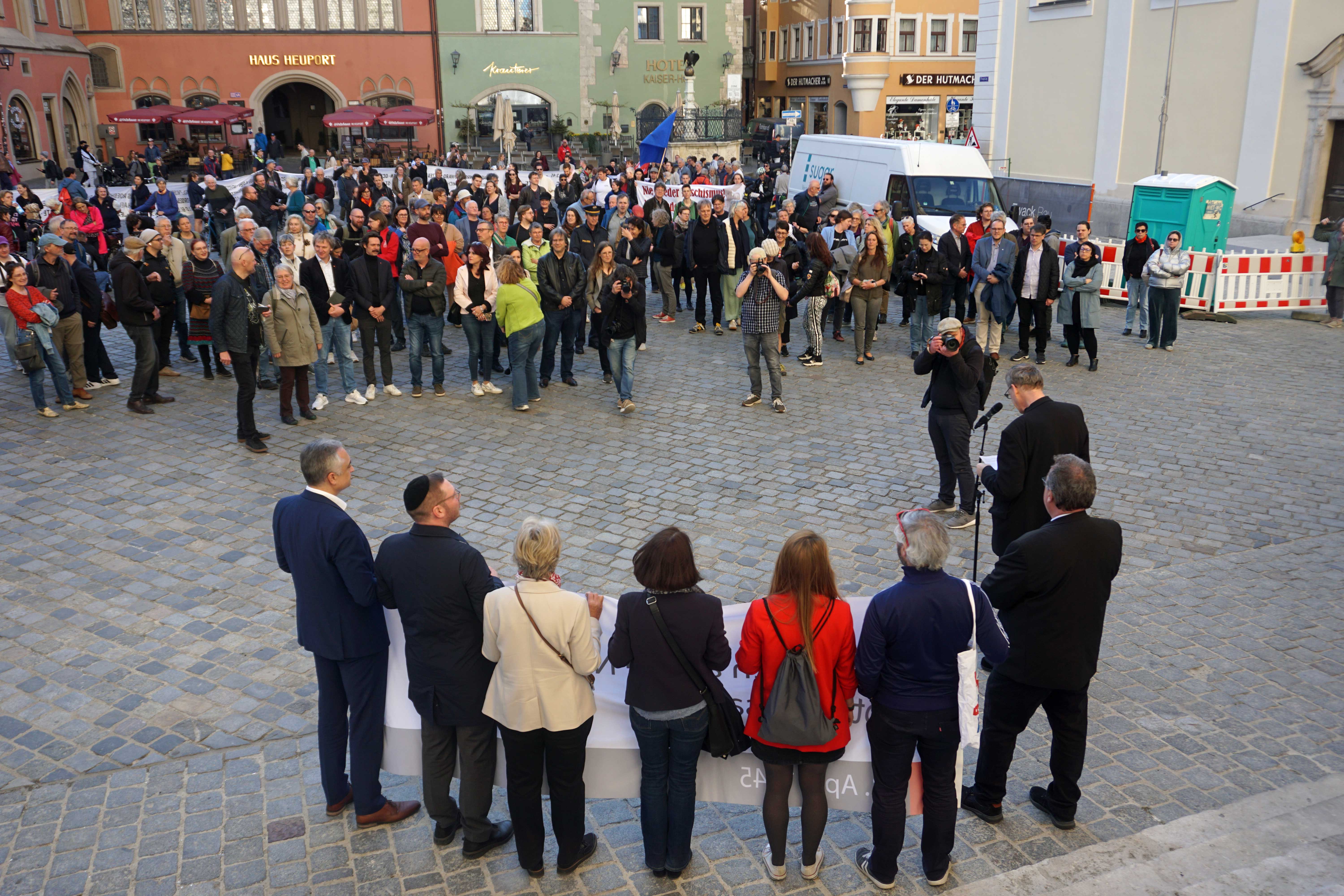 Der weitere Gedenkweg führte die Teilnehmer über den Neupfarrplatz und die Synagoge zum St. Georgen- und Dachauplatz. Dompropst Franz Frühmorgen, Stadtdekan Roman Gerl sowie Weibischof Josef Graf schlossen sich dem Gedenkweg an.