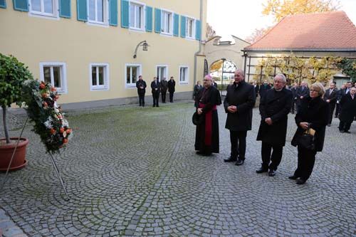 Im Anschluss an das Gedenken „Erinnerung. Nicht vergessen.“ in der Klosterkirche St. Vitus fand eine Kranzniederlegung an der Gedenktafel im Kirchhof von St. Vitus statt.