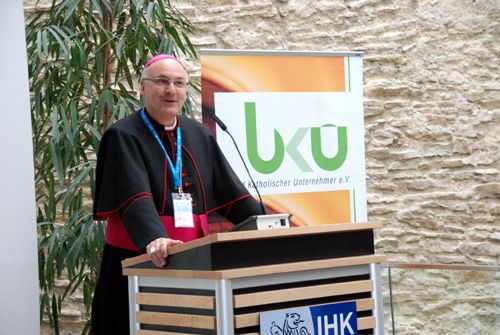 Anlässlich des Katholikentags hat die Industrie- und Handelskammer Regensburg (IHK) gemeinsam mit dem Bund Katholischer Unternehmer (BKU) ihren Empfang ausgerichtet. IHK-Hauptgeschäftsführer Dr. Jürgen Helmes, BKU-Vorsitzender Dr. Michael Scherm sowie die BKU-Bundesvorsitzende Marie-Luise Dött sprachen Worte der Begrüßung und des Dankes aus. Der Regensburger Bischof Dr. Rudolf Voderholzer stellte in seinem Grußwort Brücken vor, die den Dialog zwischen Kirche und Wirtschaft verstärken können.