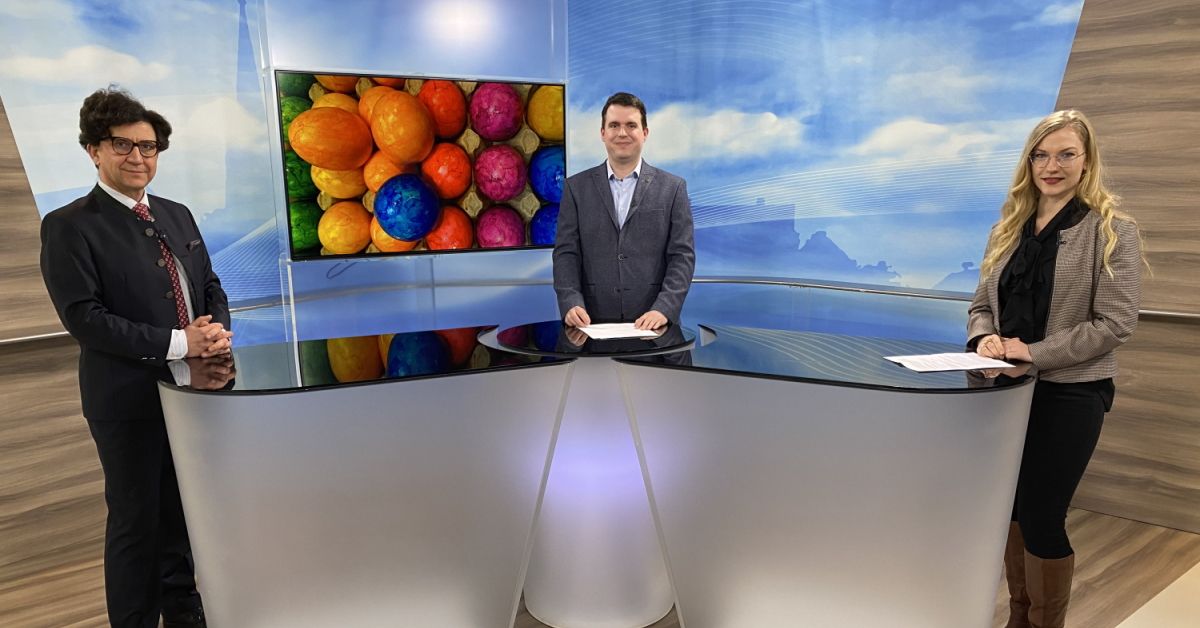 Behandelt wurd, was hinter dem Osterhasen und den Ostereiern steht und was es mit Ostern überhaupt auf sich hat. Moderiert von Matthias Feuerer, dem Stellvertretenden Chefredakteur von TVA, unterhielten sich Prof. Neumann und Frau Gewehr auch darüber, dass Ostern keine Theorie, sondern vor allem Begegnung ist – mit dem Auferstandenen. Sie stellten sich der Frage, wie man überhaupt in der menschlichen Sprache über so große Dinge sprechen kann, wie es die Auferstehung Jesu Christi von den Toten ist. Oder verschlägt es da einem oder gar der Kirche die Sprache? Die Ostereier und -hasen, die verschenkt werden, zeigen symbolisch, dass Ostern einfach ein umwerfendes Geschenk ist. „Diese Erfahrung ist so umwerfend, dass wir sie unbedingt weitergeben möchten“, sagt Prof. Veit Neumann.