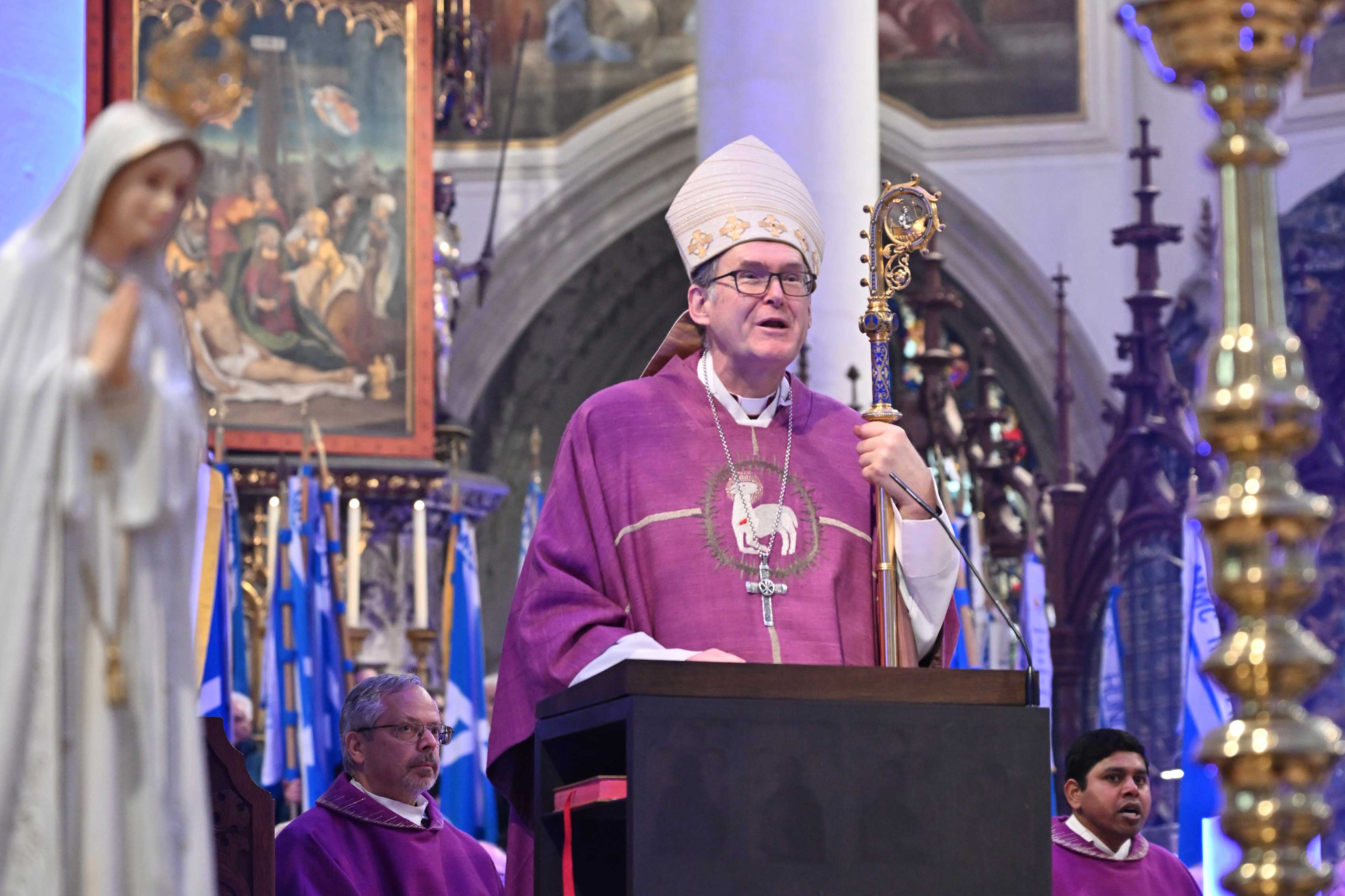 Doch der Bischof blickte nicht nur zurück. Er warnte vor einer modernen „inneren Blindheit“ und Orientierungslosigkeit. Mit Bezug auf eine Erzählung von Franz Kafka beschrieb er das „Tunnel-Syndrom“ unserer Gesellschaft: Wie Verunglückte in einem dunklen Eisenbahntunnel verstricken sich die Menschen in gegenseitige Schuldzuweisungen über die Ursachen des Unglücks, anstatt gemeinsam der Fackel zu folgen, die den Weg zum Licht weist. Die Pharisäer der heutigen Zeit seien jene, die trotz sehender Augen innerlich blind bleiben für das rettende Wirken Gottes.