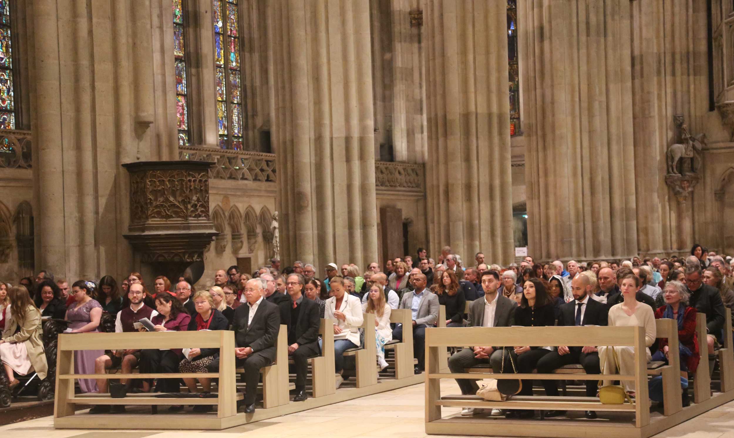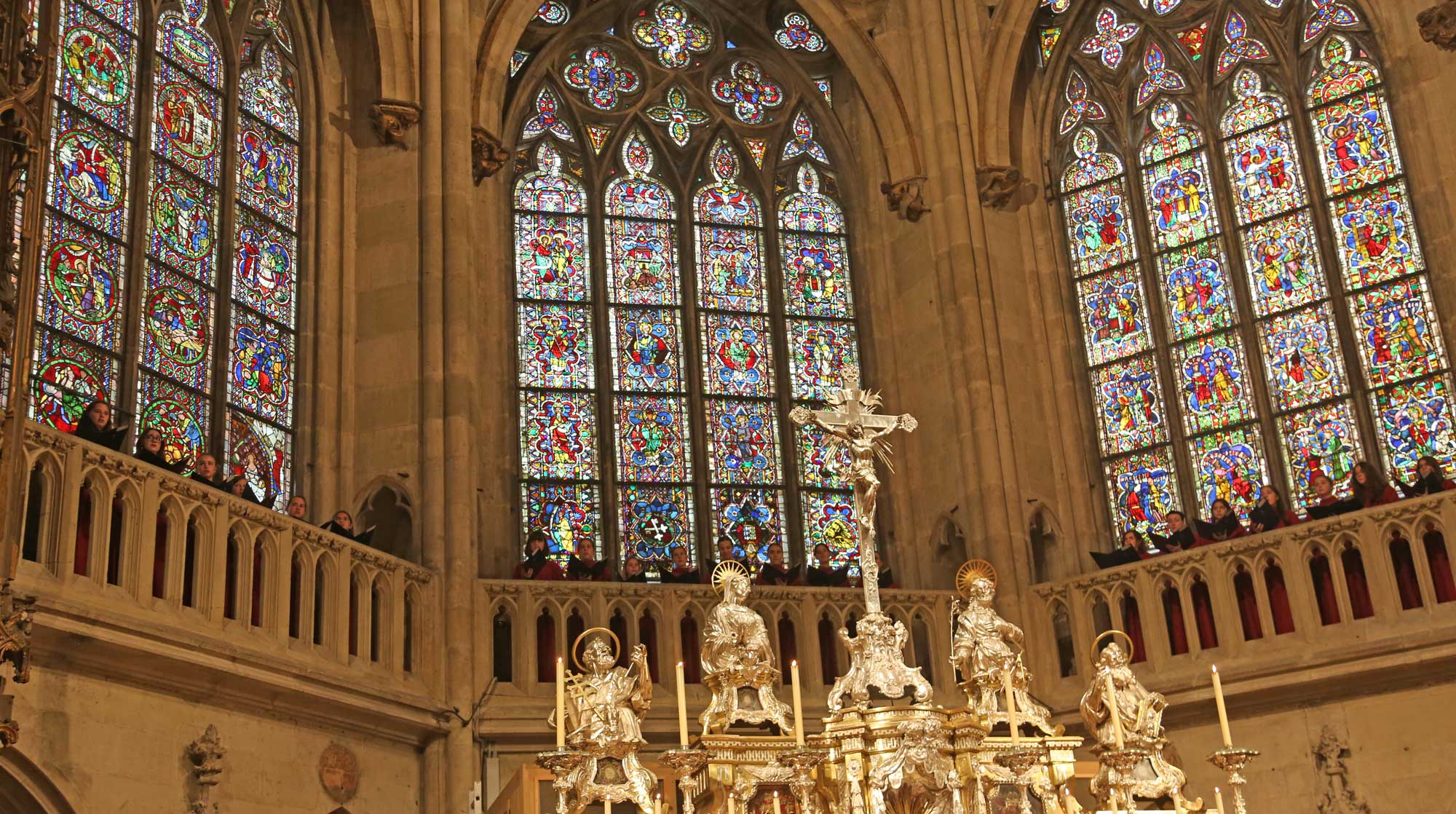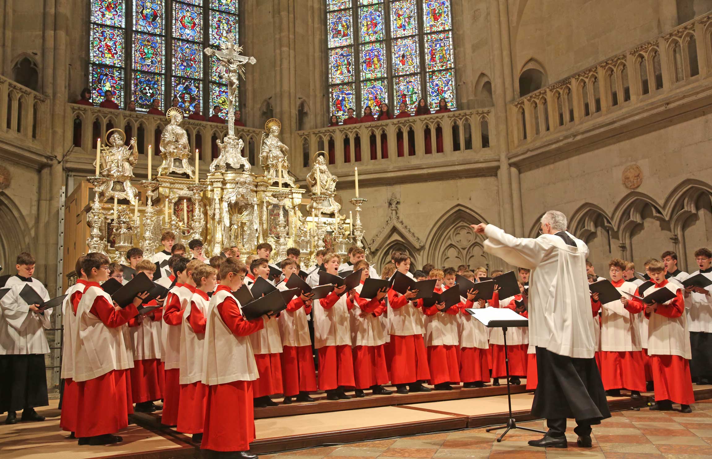 Die Konzelebranten, allesamt Mitglieder des Domkapitels, wurden angeführt von Dompropst Prälat Dr. Franz Frühmorgen und Domdekan Generalvikar Msgr. Dr. Roland Batz. Das Hochfest der Geistsendung wurde mit allem gefeiert, was die Liturgie zu bieten hat. Ein Knaben- und Männerchor der Domspatzen unter Leitung von Domkapellmeister Christian Heiß hatte traditionell vor dem Hochaltar Platz eingenommen, die Regensburger Mädchenkantorei unter Elena Szuczies platzierte sich auf der Galerie über dem Hochaltar. Mit Domorganist Professor Franz Josef Stoiber war es ein geistliches Klangerlebnis, das passend zum Pfingstfest einfach nur begeisterte.