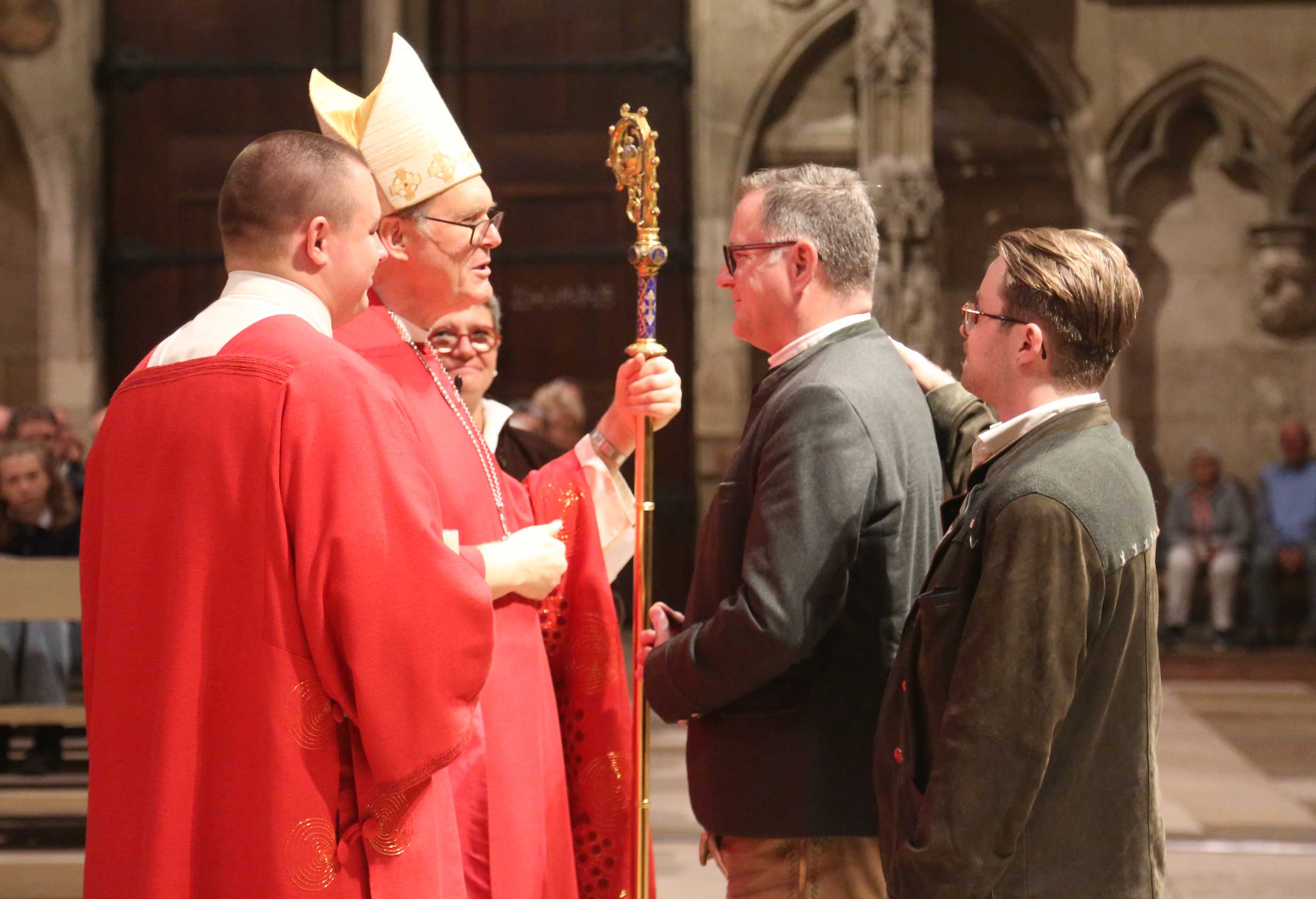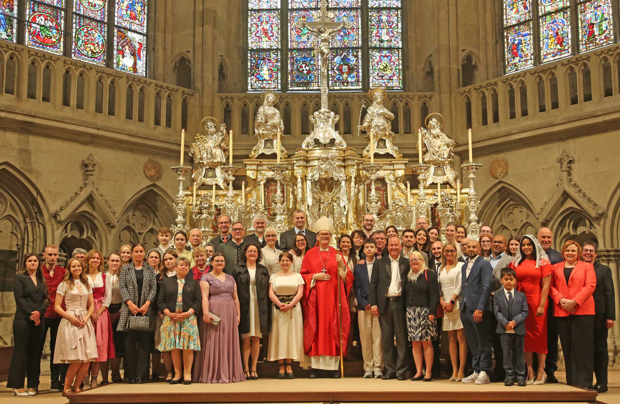 „An Pfingsten gibt es zwar zwei Wochen Ferien, aber keine Geschenke“, so die Antwort eines Schulkindes auf die Frage nach der Bedeutung von Pfingsten. Mit dieser Anekdote begrüßte Weihbischof Dr. Josef Graf am Pfingstsonntagvormittag die Firmanwärter, deren Paten und Familien sowie alle Gläubigen, die den Dom St. Peter bis auf den letzten Platz füllten. Es sei ihm eine große Freude, so der Weihbischof weiter zu den 28 Firmlingen im Alter von 15 bis 64 Jahren, ihnen an diesem Tag die Firmung zu spenden.