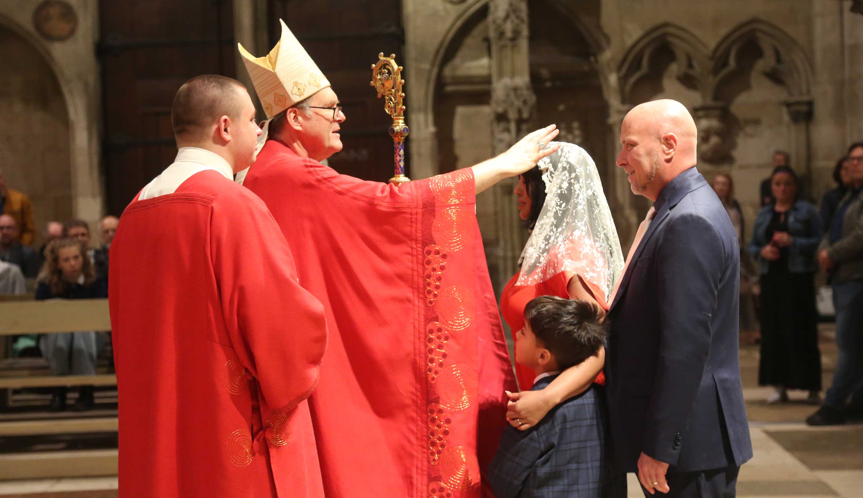 Weihbischof Dr. Josef Graf spendet am Pfingstsonntag das Firmsakrament an 28 Christen