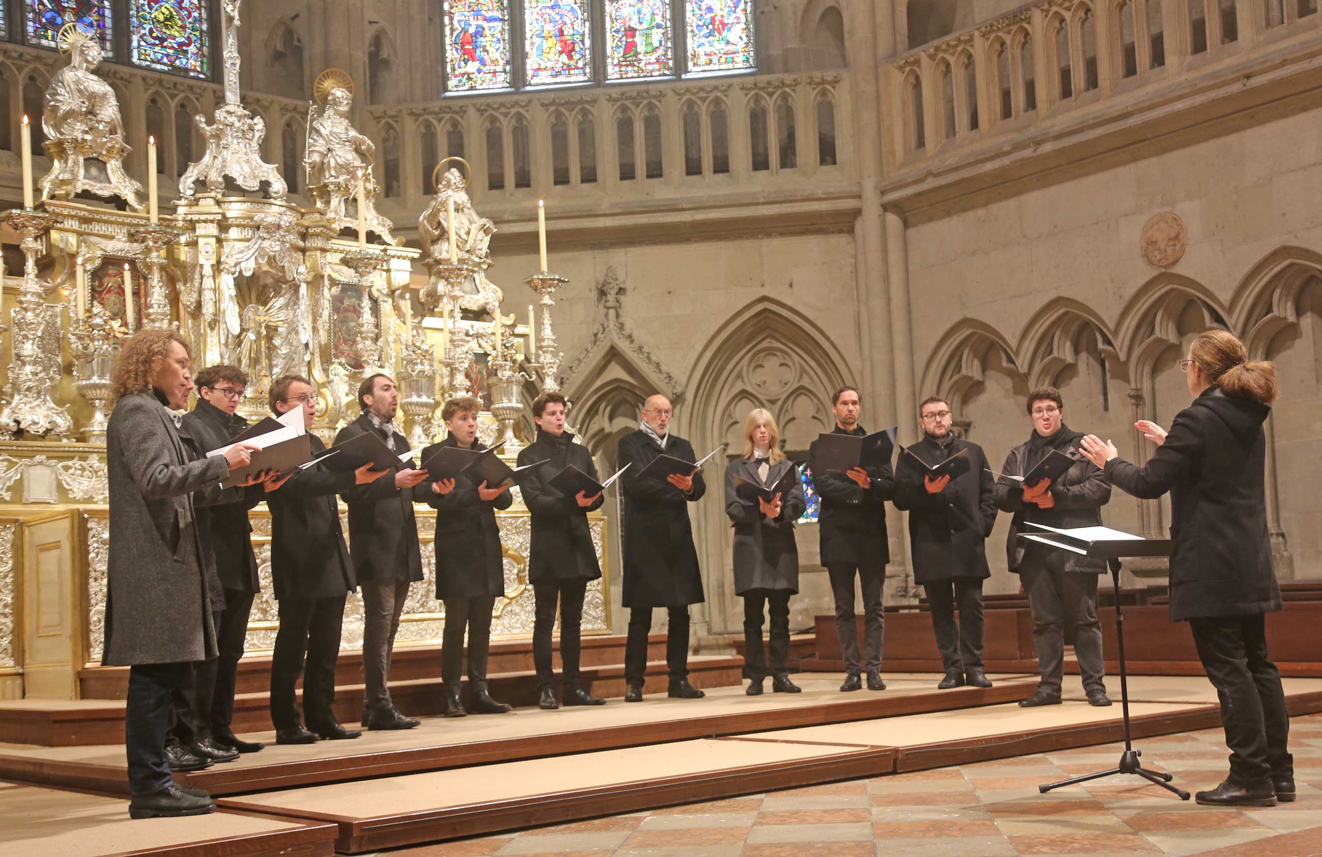 „In festlicher Freude versammelt sich heute die Kirche zum Hochfest Allerheiligen. Die Heiligen sind nicht von gestern, sondern sie sind Heilige für immer, die Kirche blickt heute auf sie als Vorbilder“, so begrüßte Weihbischof Reinhard Pappenberger am Samstagvormittag die Gläubigen im Regensburger Dom. Sein Gruß galt auch seinen Konzelebranten Kurienbischof Dr. Franz-Peter Tebartz-van Elst sowie den Domkapitularen Prof. Dr. Josef Kreiml, Msgr. Martin Priller und Offizial Dr. Peter Stier. Mit ihnen feierte Lothar Landendinger als Diakon am Altar. Das gesungene Gotteslob an diesem Allerheiligenfest kam vom Vokalensemble ehemaliger Domspatzen unter Leitung von Elena Szuczies und mit Professor Franz Josef Stoiber an der Domorgel.