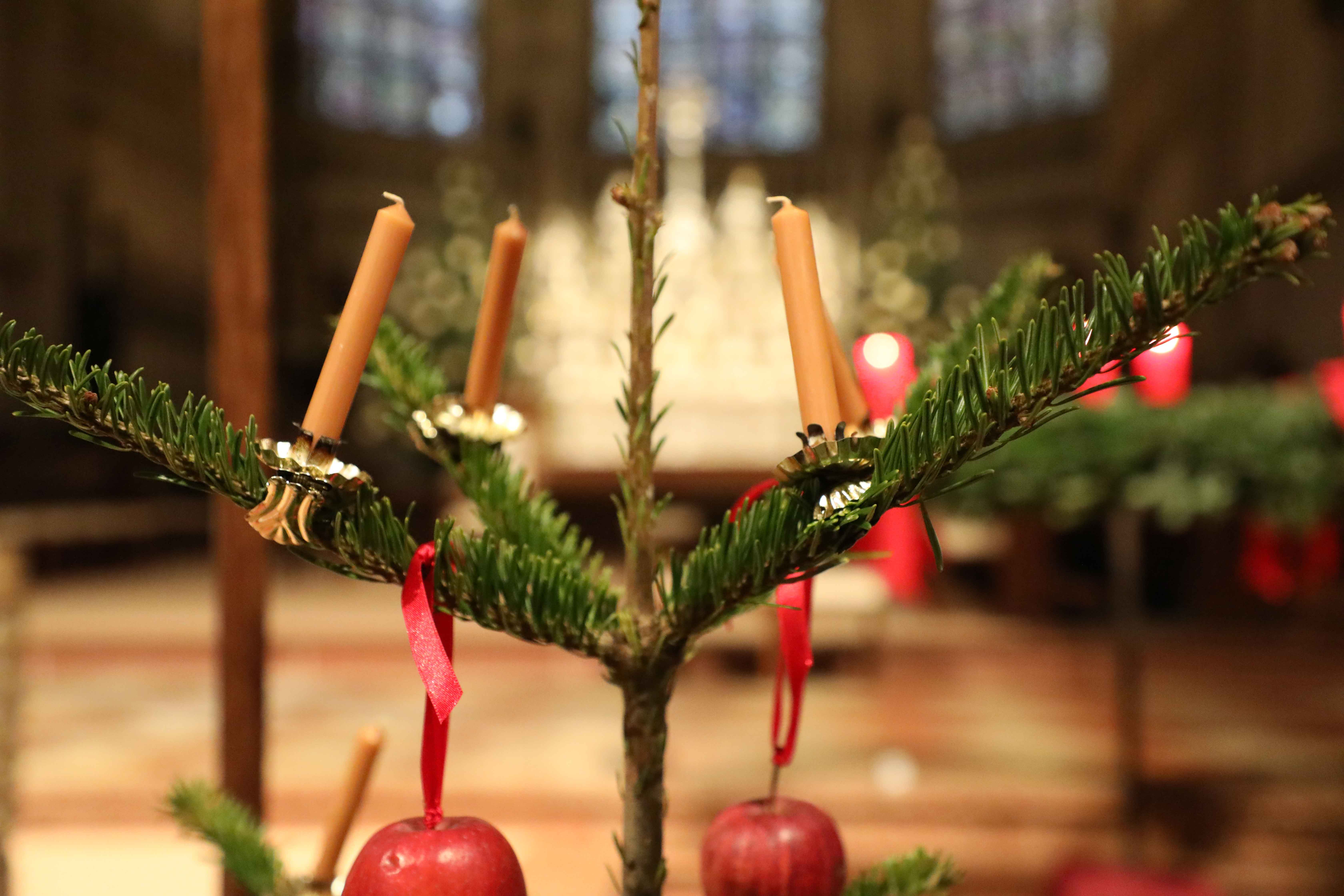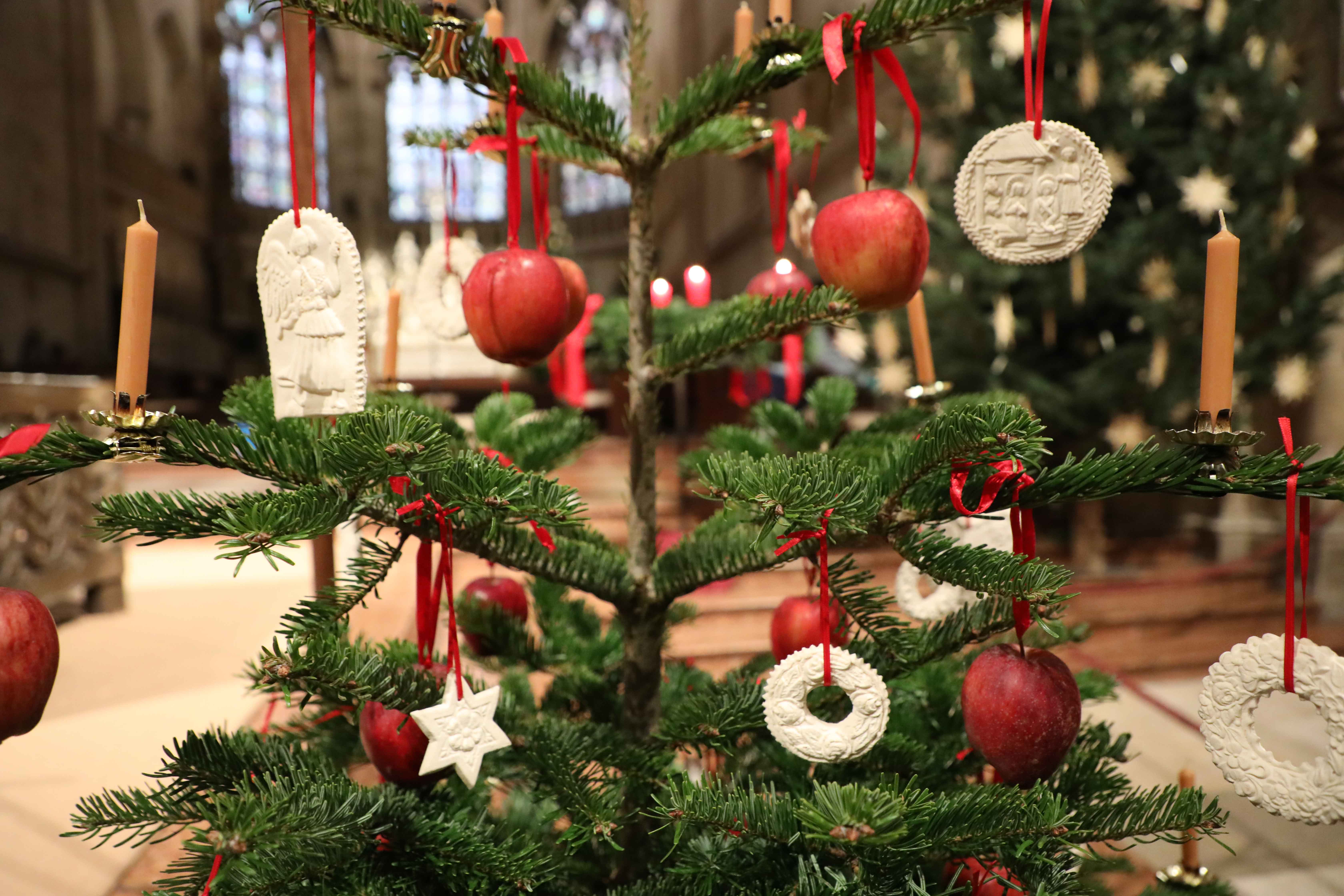 Bei diesem Christbaum kommen ganz besondere Kriterien zum Einsatz. Die Nordmanntanne wird mit echten roten Äpfeln, Strohsternen, Springerle und echten Wachskerzen behängt. Ein persönlicher Wunsch von Bischof Rudolf, der das Weihnachtsfest im Regensburger Dom noch persönlicher und feierlicher macht. Neben diesem speziellen Christbaum vor dem Kreuz wird auch die Krippe mit dem Jesuskind aufgestellt. Bischof Rudolf möchte mit diesem Christbaum auch eine Botschaft senden. Und zwar: Der Christbaum ist weit mehr als nur eine schöne Deko am Weihnachtsfest. Er hat vor allem eine christliche Bedeutung. Der Ursprung des Christbaumes ist tatsächlich der Baum der Erkenntnis von Gut und Böse, wie uns auf den ersten Seiten der Bibel mit der symbolischen Geschichte von Adam und Eva vor Augen gestellt wird. Die roten Äpfel sind der Ursprung der Christbaumkugeln und verkörpern die Darstellung des Sündenfalls, als Adam und Eva die verbotene Frucht vom Baum der Erkenntnis verzehrten. Strohsterne verleihen dem Christbaum eine ganz besondere Schönheit. Auf Heu und Stroh lässt sich der Gottessohn in der Krippe beten, diese Symbolik sollen die Strohsterne verkörpern. Die echten Wachskerzen werden in der Christmette von den Regensburger Domspatzen feierlich entzündet.