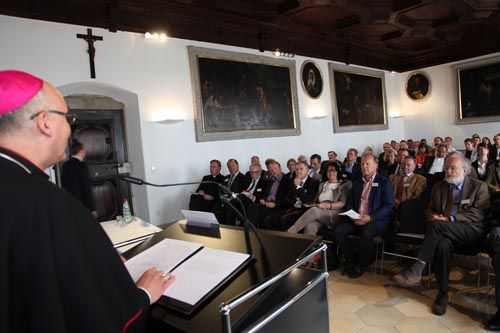 Im Rahmen der „Eichstätter Gespräche“ hat Bischof Dr. Rudolf Voderholzer über die neue Enzyklika „Laudato si“ von Papst Franziskus gesprochen. Die Eichstätter Gespräche werden vom Bund katholischer Unternehmer (BKU) und der Ingolstadt School of Management im Rahmen der Katholischen Universität Eichstätt-Ingolstadt (KU) ausgerichtet. Anschließend feierte der Regensburger Bischof in der Eichstätter Schutzengelkirche ein Pontifikalamt. Zu den Gesprächen und dem Gottesdienst waren rund 100 Unternehmer, darunter zahlreiche Mitglieder der Bischöflichen Studienförderung Cusanuswerk gekommen. Die Veranstaltung stand außerdem in Kooperation mit der Katholischen Sozialwissenschaftlichen Zentralstelle in Mönchen-Gladbach.