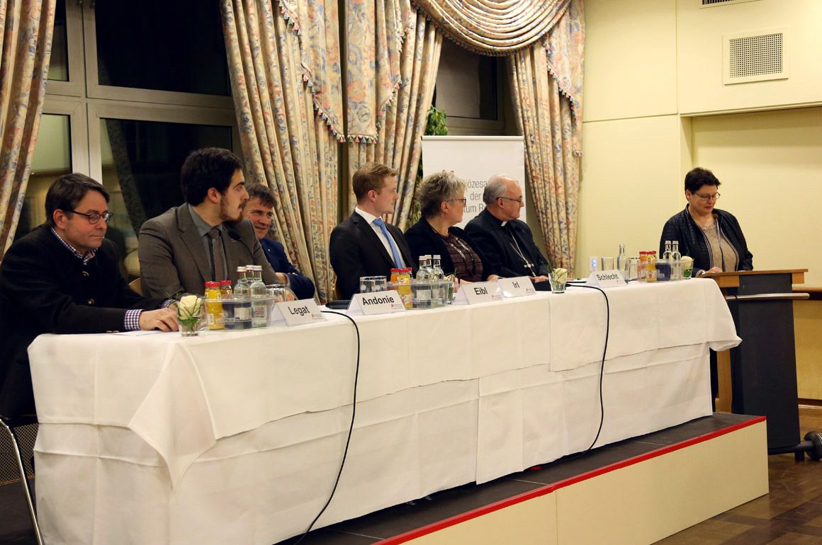 Als Vertreter von diözesaner Ebene war für die Verbände Karin Schlecht (Diözesanvorsitzende des KDFB) anwesend, für die Pfarrgemeinderäte Reinhard Legat (PGR Tirschenreuth) und für die Geistlichen Gemeinschaften Josef Irl (Jugend 2000). Thomas Andonie (ehemaliger BDKJ-Vorsitzender und ehemaliger stellvertretender Vorsitzender des Diözesankomitees) war als Initiator der Reihe anwesend. Moderiert wurde der Abend von Michael Eibl, dem Direktor der Katholischen Jugendfürsorge. Auch die Vorsitzende des Diözesankomitees, Michaela Halter, war anwesend. Sie sprach zur Begrüßung ein paar Worte, überließ dann aber Bischof Rudolf Voderholzer das Feld.