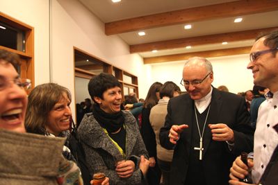Am Donnerstagabend fand im Pfarrheim St. Vitus Offenstetten eine Begegnung von Bischof Rudolf Voderholzer mit den Gläubigen aus dem Dekanat Abensberg-Mainburg statt, die zuvor am Pontifikalamt teilgenommen hatten, das der Regensburger Bischof anlässlich des Abschlusses der Großen Visitation im Dekanat gefeiert hatte. Während seiner Predigt hatte Bischof Voderholzer an die zahlreich anwesenden Gläubigen appelliert: „Wir sind als Christen da unersetzlich, wo wir durch unser Glaubenszeugnis für andere Menschen den Himmel offen halten, damit sie die guten Werke sehen und den Vater preisen.“ In diesem Sinne gelte es, Zeugnis für Gott den Schöpfer und Erlöser abzulegen.