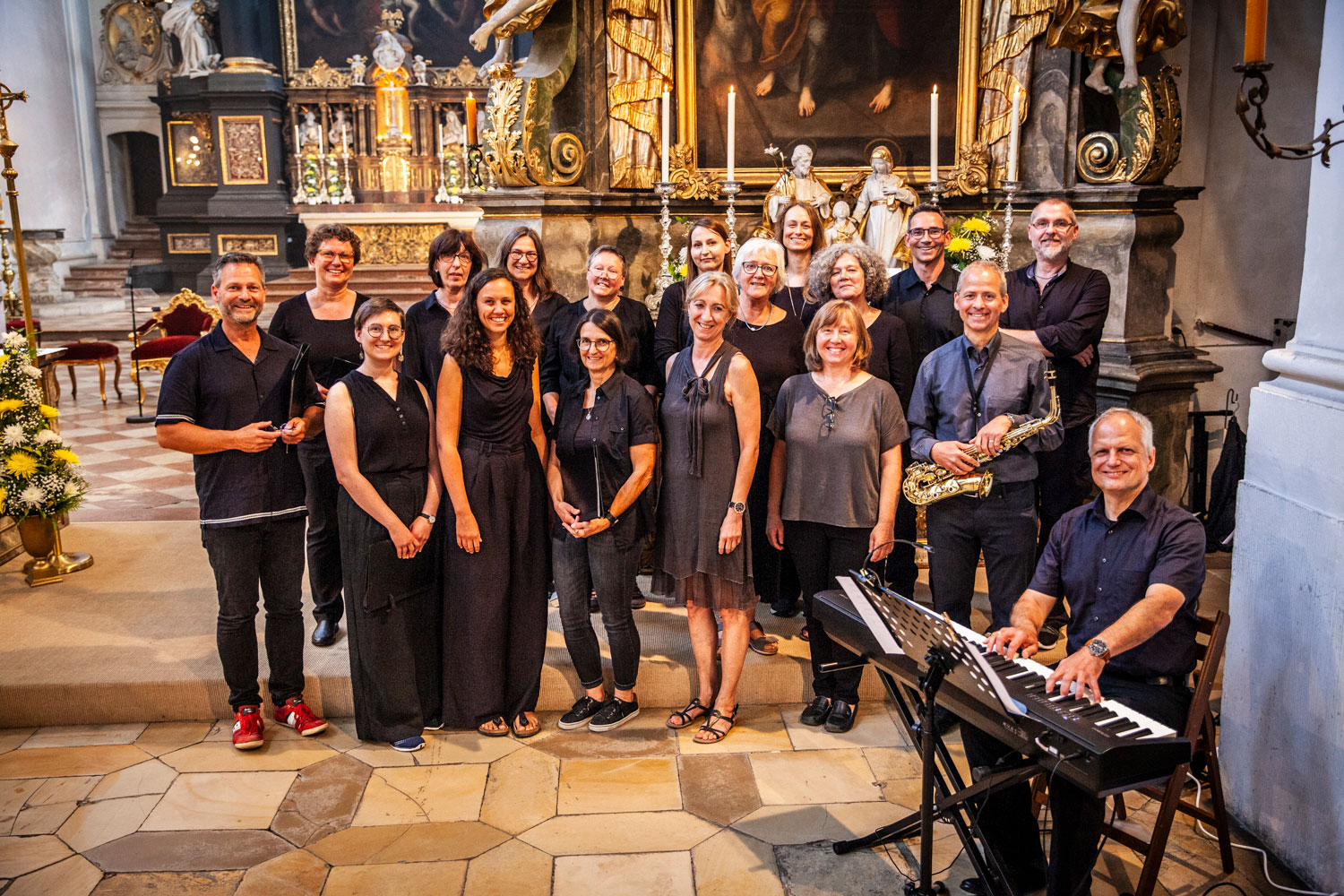 Musikalisch gestaltete den Gottesdienst der Chor der Caritas, und zwar unter der Leitung von Finanzchef Thomas Rieder. Der Chor – mit Dr. Robert Seitz am E-Piano und Personalchef Stefan Schmidberger am Saxophon – sang diesmal die Gospelmesse „HE“ des deutschen Komponisten Simon Zemzik. Sie interpretiert traditionelle liturgische Texte in den Klangwelten von Gospel, Jazz, Rock und Pop. Zu Beginn hieß es: Somebody’s knocking at your door. Da klopft jemand an deine Tür.